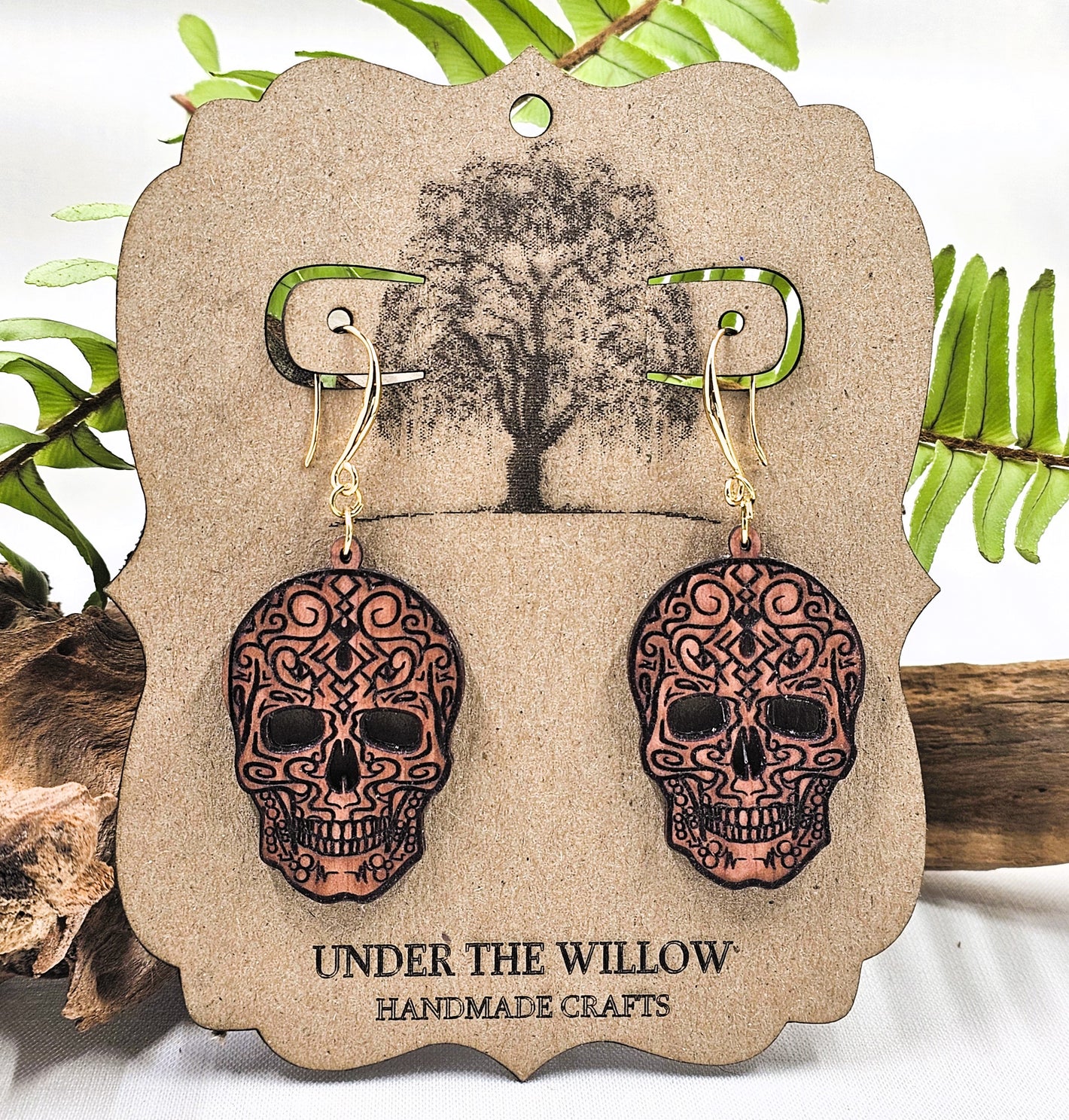 Add a touch of whimsy to your outfit with these Cat Dangle Earrings. Made from American walnut wood and hypoallergenic hardware, these earrings feature a mystical cat design that is sure to catch everyone's eye. Perfect as a thoughtful gift for the cat lover in your life!