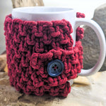 Introducing the Macrame Coffee Mug Cozy - the perfect way to keep your coffee hot and your style cool. Crafted with high quality organic and sustainable cotton cord, this cozy is made to last. Each cozy is uniquely knotted in a variety of patterns with a vintage button, ensuring you'll have a one-of-a-kind accessory for your standard 11 oz mug. Say goodbye to nylon yarn and hello to a cozy with personality!