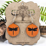 Elevate your style with our Dragonfly Dangle Earrings, crafted from local American cedar. Featuring a circular design and hypoallergenic hardware, these earrings provide both unique elegance and comfort. Embrace nature-inspired jewelry and adorn yourself with these subtle yet striking earrings.
