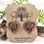 Add a touch of love to your outfit with our Heart Dangle Earrings. Handcrafted with local cedar wood, these earrings feature a cut-out heart design with a delicate heartbeat line. The hypoallergenic hardware ensures comfortable wear, making them a perfect gift for anyone with sensitive ears.