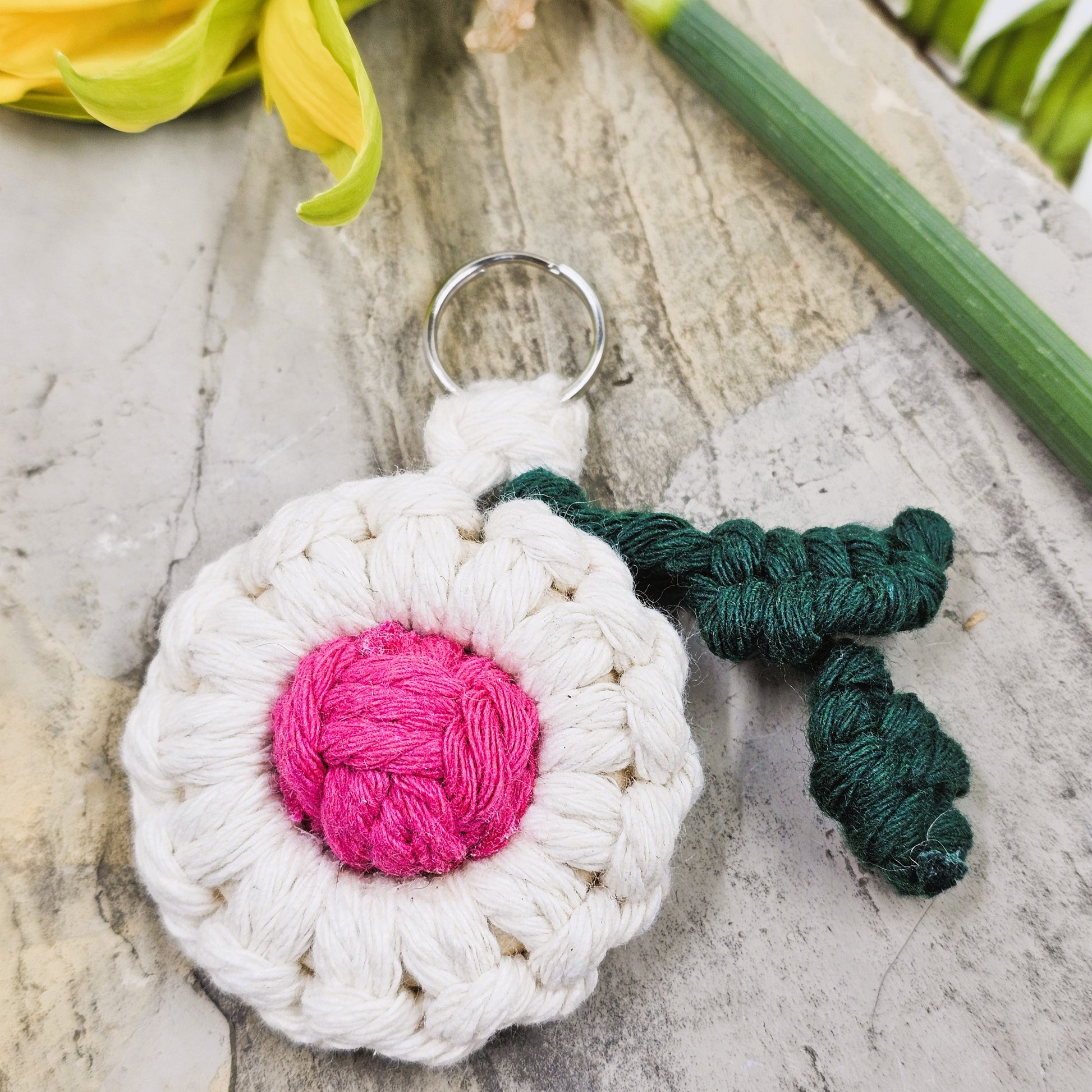 Introducing our adorable Macrame Daisy Keychains, the perfect way to add a touch of whimsy to your keys! Each keychain is lovingly handcrafted in an array of vibrant colors, using a delightful combination of environmentally friendly organic, fair trade, and recycled cotton material. These charming daisy keychains are not only stylish but also sustainable, making them a guilt-free accessory for any nature lover. Brighten up your day and your keys with our eco-friendly Macrame Daisy Keychains today!