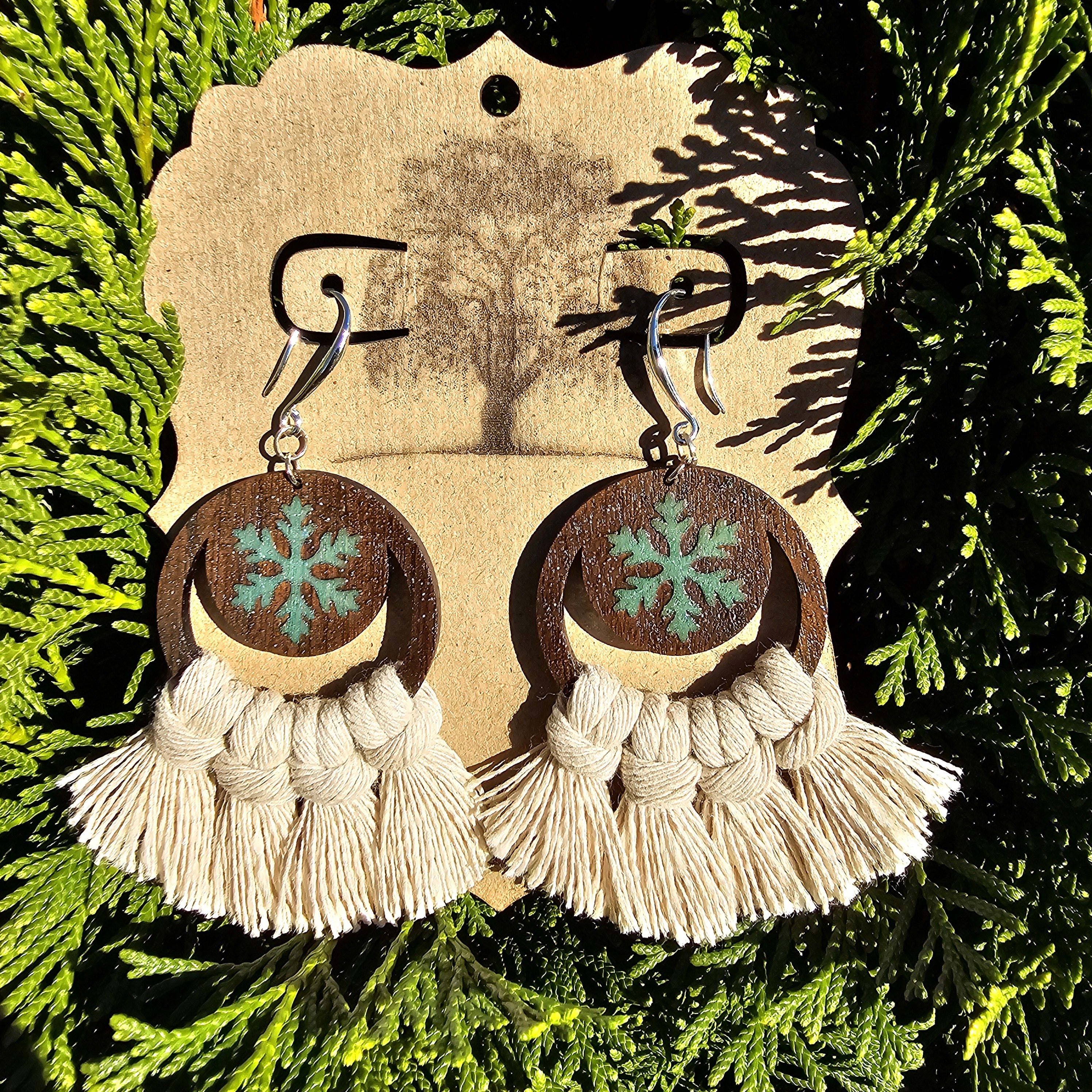 Transform your look with our exquisite Macrame Snowflake Dangle Earrings, meticulously handcrafted in our workshop. These unique pieces add a touch of bohemian charm and are perfect for elevating any outfit or as a luxurious gift.