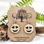 Spread cheer with a pair of Smiley Face Dangle Earrings made from American hardwood and hypoallergenic hardware. The shiny gold glitter adds a touch of fun to your outfit, while the earrings themselves are sure to bring happiness to both you and those around you!