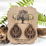 Indulge in elegance with our Symmetrical Dangle Earrings. Crafted from American Walnut wood and featuring a teardrop design, these earrings exude sophistication. The shiny rainbow glitter adds a touch of shimmer to your look. Hypoallergenic hardware ensures comfort for all-day wear. Elevate your style with these exclusive earrings.